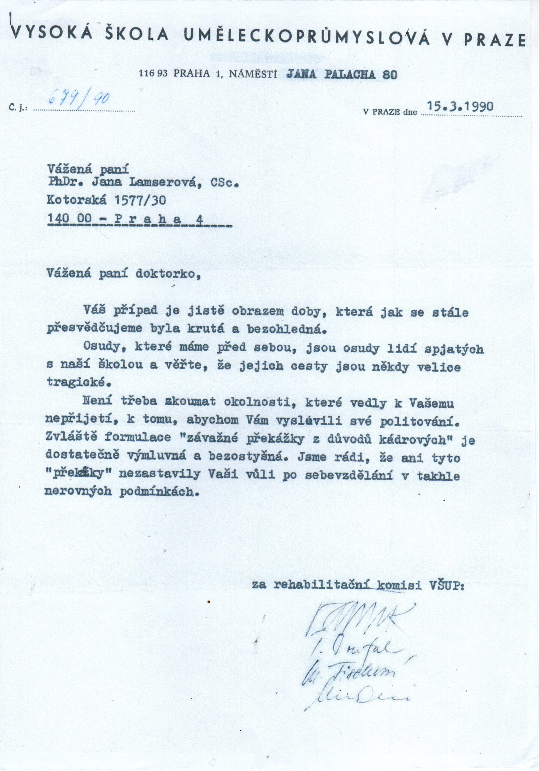 1990 – VŠUP Rehabilitační oznámení