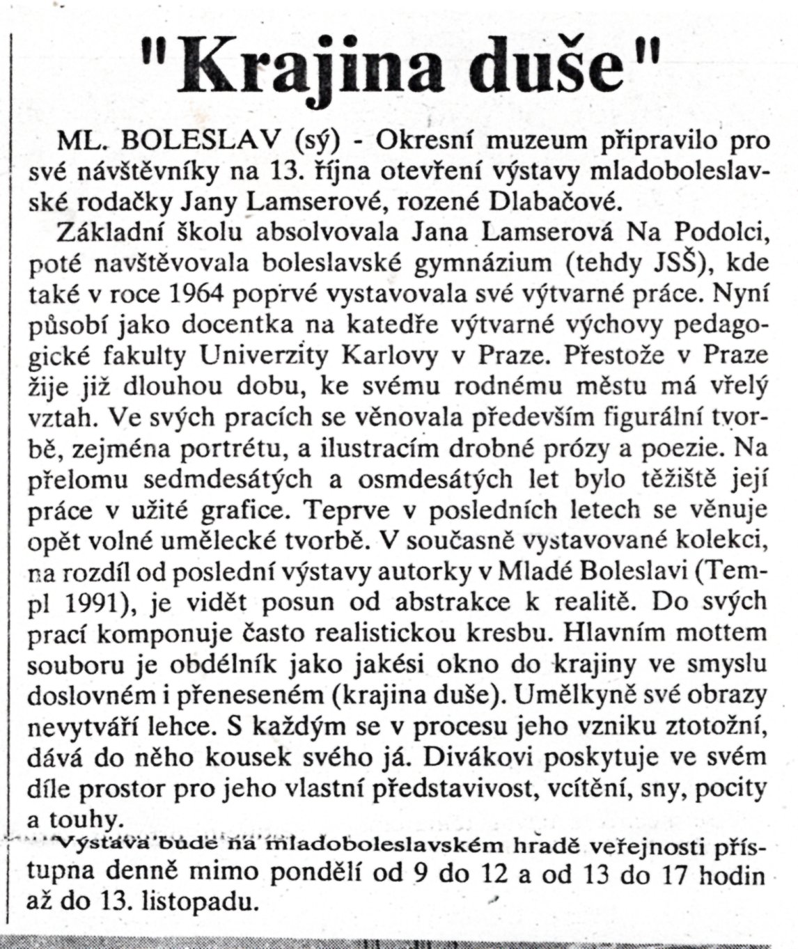 Tisková zpráva Krajina duše
